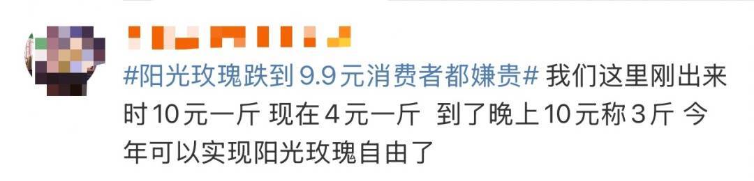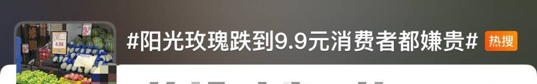 此前话题“阳光玫瑰跌到9.9元消费者都嫌贵”话题也冲上热搜。