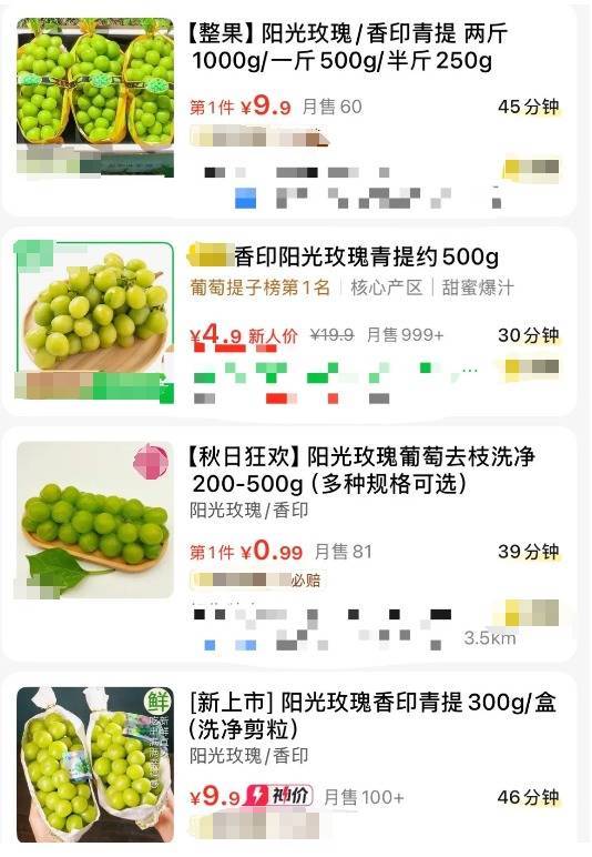 而在平台上搜索广州的阳光玫瑰售价,可以看到有商家推出200-500g/0.99元的活动。