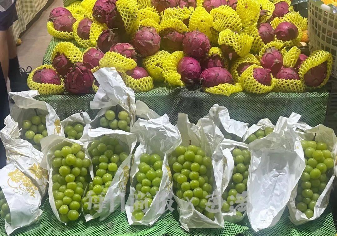 而在一街之隔的生鲜超市,阳光玫瑰被成堆地堆放在门外。“我们店的阳光玫瑰9.9元两斤。”店主表示:“要不是考虑到店铺的齐全性,真的不太想进阳光玫瑰,能卖多少算多少吧。”